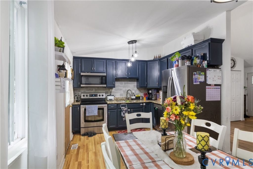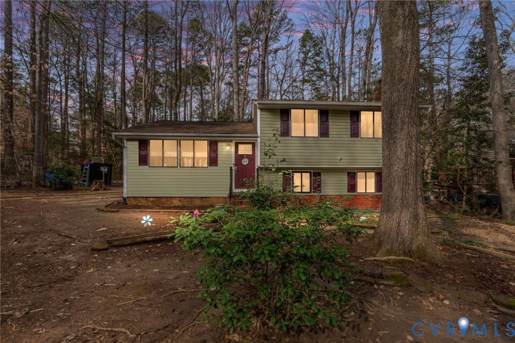 Great opportunity to add value in the highly desirable, tree-lined Brandermill community, known for its beautiful landscaping and outstanding amenities. This tri-level home offers 3 bedrooms and 2 full baths with a functional layout and excellent renovation potential. The main level features a bright, open family room with vaulted ceilings, creating an inviting living space. The kitchen, complete with a dining area, includes granite countertops and stainless steel appliances and flows seamlessly into the main living space-ideal for everyday living and entertaining. The primary suite offers a private ensuite bath, while two additional bedrooms-each with ceiling fans and carpet-share an updated hall bathroom featuring granite countertops, tile flooring, and a tiled tub/shower. The lower level provides additional living space with a fireplace, plus approximately 240 square feet of unfinished area with the potential to expand finished square footage or add a third bathroom. The laundry area is located within this space and includes a walkout to the backyard. Enjoy outdoor living on the rear deck, perfect for relaxing or entertaining. Brandermill residents benefit from miles of walking trails, parks, pools, golf, and convenient access to shopping, dining, and major commuter routes. Home is being sold as-is, offering a prime opportunity for investors or buyers looking to renovate and build equity.